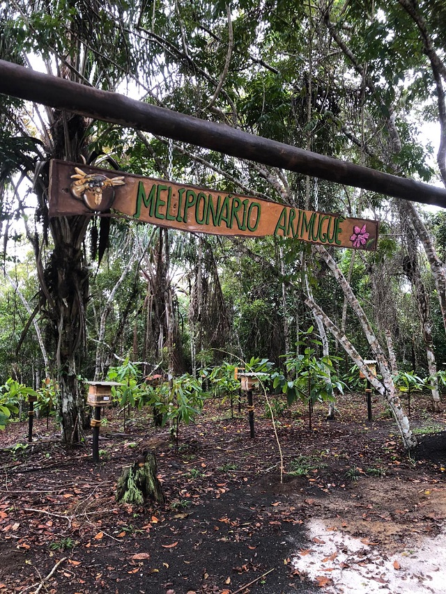 Com a visão exuberante do mar e da mata atlântica, a fazenda tem em sua entrada o meliponário onde se pode saborear com um canudinho o mel de Uruçu amarela que está sendo produzido em colmeias que dividem o espaço com árvores de cupuaçu e pimenta do reino. As abelhas sem ferrão são perfeitas para polinização e este tema e sua relação com as plantas, os processos, as diversidades e a iniciação à criação racional, será apresentado pelo Jean-Philippe e o Carlos no