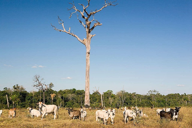 Criação de gado em área desmatada no Mato Grosso. A atividade pecuária ainda é uma das maiores causadoras de desmatamento na Amazônia brasileira © Werner Rudhart / Greenpeace