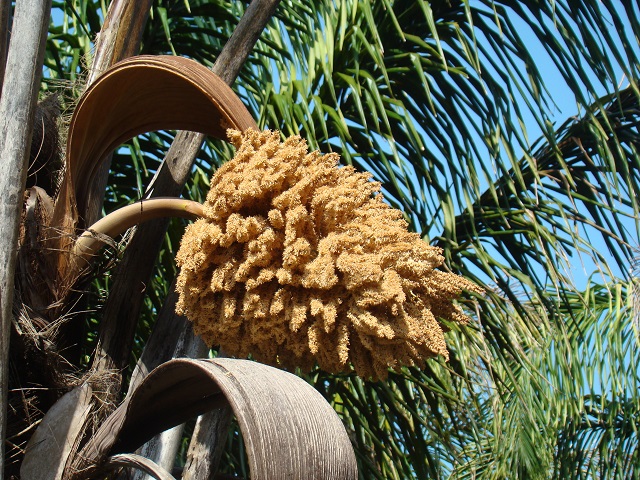 Cacho de inajá com flor - Foto: Paulo André Rodrigues da Silva