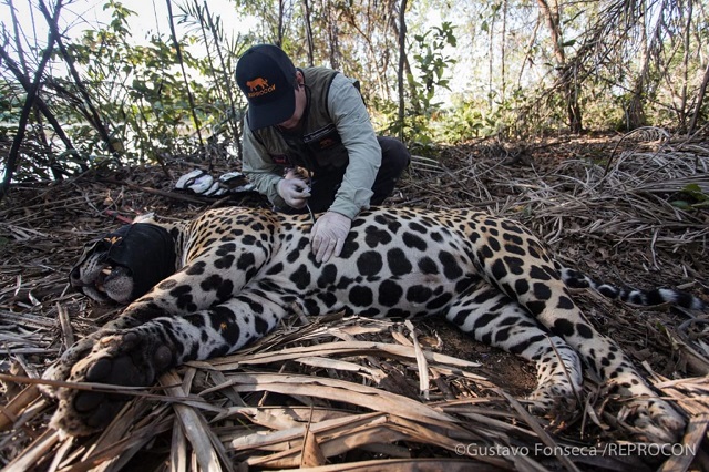 Monitorado desde setembro, quando recebeu um colar de telemetria, a onça Sandro apareceu morto em uma fazendo em Corumbá, no Mato Grosso do Sul - Foto: Gustavo Fonseca/Reprocon