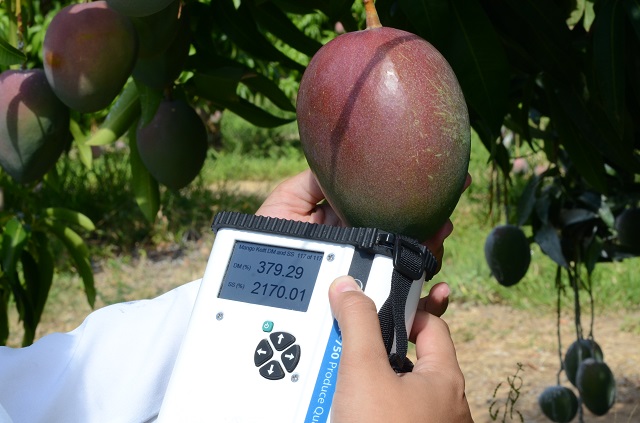 A tecnologia vem sendo aplicada às principais variedades de manga cultivadas nas condições ambientais do Submédio do Vale do Rio São Francisco (Tommy Atkins, Palmer e Keitt). Para tanto, foram medidos e analisados milhares de dados necessários para uma efetiva calibração e validação do uso dos equipamentos. Entre os parâmetros de qualidade avaliados nos frutos estão os teores de matéria seca, sólidos solúveis (Brix), amido, acidez titulável, firmeza de polpa, cor de casca e de polpa.