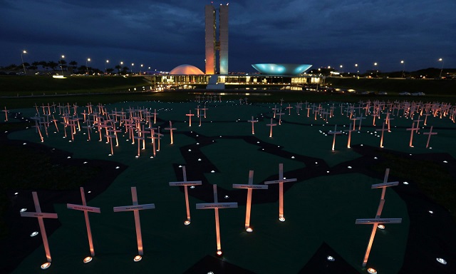 Os protestos contra o comércio ilegal de madeira no Brasil destacaram o número de pessoas mortas enquanto defendiam a floresta. Foto: Eraldo Peres / AP