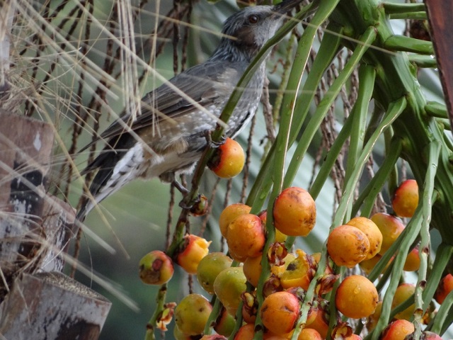 Pássaro se esbaldando com o fruto do butiazeiro (butiá) - Foto: Divulgação