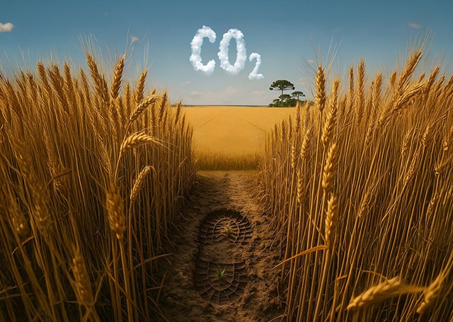 No contexto mundial, os dados existentes indicam que a pegada de carbono na produção de trigo varia de 0,35 a 0,62 kg de CO₂ por kg de grãos, dependendo das condições climáticas e das práticas agrícolas de cada região tritícola. A média global está estimada em 0,59 kg de CO₂ para cada kg de grãos de trigo produzidos.