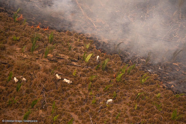Gado próximo a Focos de Calor no município de Lábrea (AM) - Foto: Christian Braga/Greenpeace