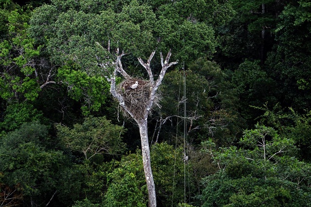 O estudo mostra que na floresta amazônica, as mesmas espécies de árvores usadas como locais de nidificação da harpia (