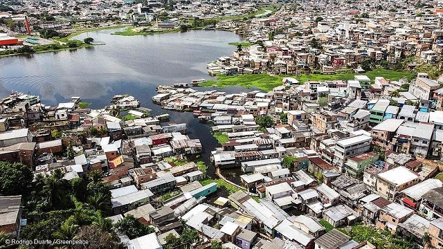 Cenas aéreas do bairro do Educandos, na Zona Sul de Manaus , uma das áreas mais atingidas pela cheia do Rio Negro - Foto: Rodrigo Duarte/Greenpeace