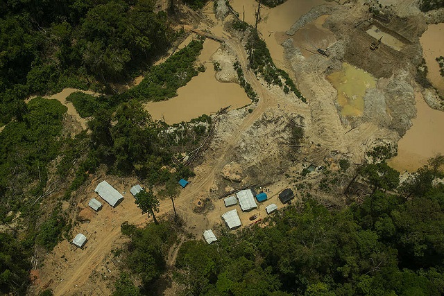 Destruição causada por garimpos ilegais na Terra Indígena Munduruku, no Pará (setembro/2019). © Christian Braga / Greenpeace