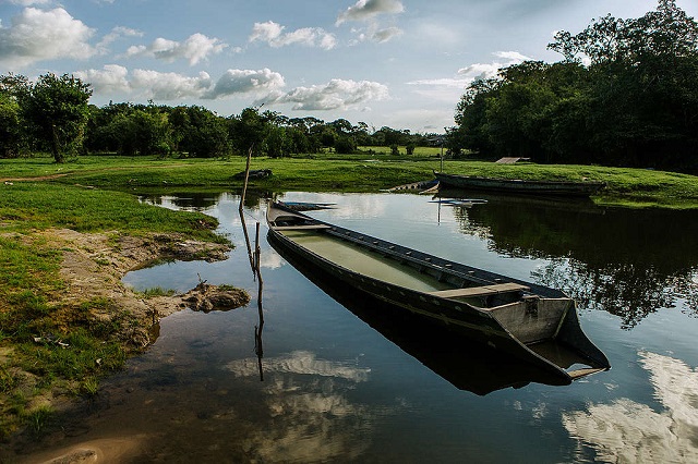 Paisagem do PAE Lago Grande, repleto de igarapés com água pura e cristalina, que é utilizada para o banho, preparo de alimentos e consumo das famílias da comunidade de Piraquaia. A comunidade é um polo da pesca artesanal e da agricultura familiar. Foto: © Tuane Fernandes