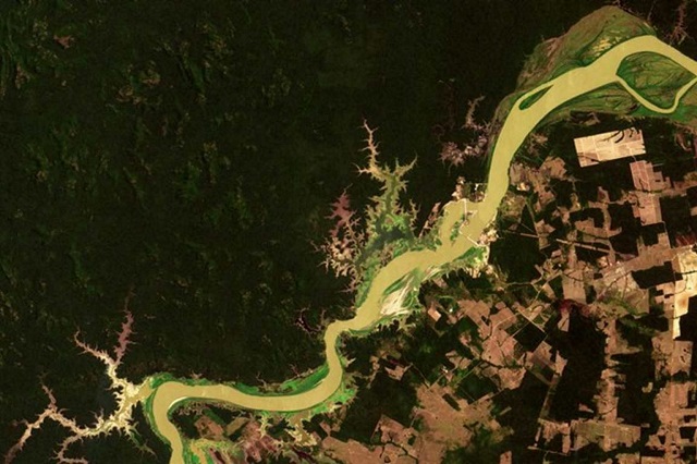 Hidrelétrica de Jirau, no Rio Madeira. Imagem do Satélite CBERS-4A, produzido e operado pelo INPE - Imagem: Divulgação