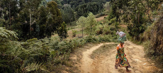 Uma mulher transporta mercadorias através da Reserva Florestal Natural de Uluguru, em Morogoro, Tanzânia - Foto: FAO/Luis Tato