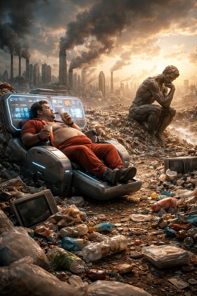 Conforto: um mundo tecnicamente sofisticado, mas existencialmente frágil — e ecologicamente exausto - Imagem gerada por IA - Foto: Ilustrativa/Divulgação
