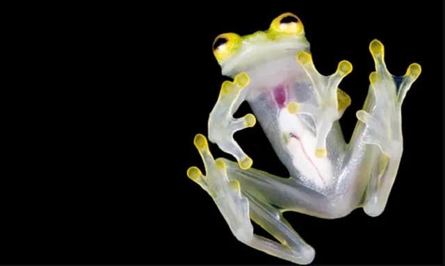 Uma nova espécie de sapo de vidro, Hyalinobatrachium mashpi, foi descoberta no início deste ano. Dez espécies de sapos de vidro estão criticamente ameaçadas, 28 estão em perigo e 21 são vulneráveis à extinção - Foto: Lucas Bustamante/Ministério do Meio Ambiente do Equador