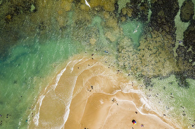 Praia do Cupe, litoral sul de Pernambuco, onde encontramos óleo submerso no recife de corais. © Fernanda Ligabue / Greenpeace