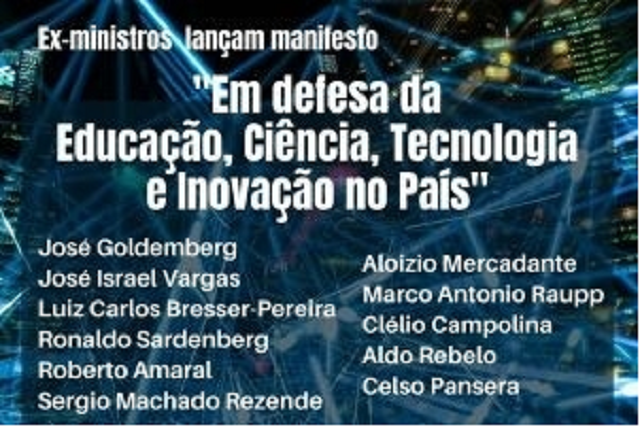 Assinado pelos ex-ministros José Goldemberg (ex-presidente da FAPESP), José Israel Vargas, Luiz Carlos Bresser Pereira, Ronaldo Sardenberg, Roberto Amaral, Sérgio Machado Rezende, Aloizio Mercadante, Marco Antonio Raupp, Clélio Campolina, Aldo Rebelo e Celso Pansera, a