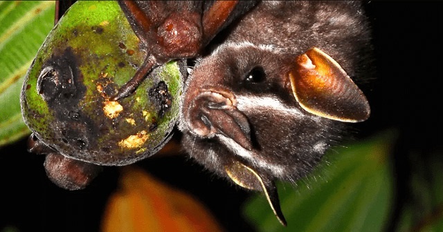 Morcego "Platyrrhinus lineatus" comendo fruto de caqui do cerrado - Foto: Marco Mello