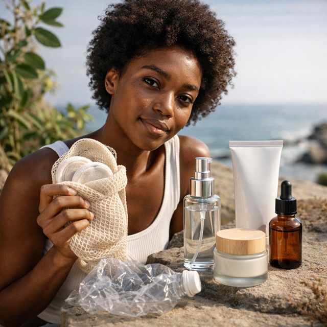 Beleza responsável começa quando menos produtos significam mais consciência — e cada escolha de cuidado também cuida do planeta - Imagem gerada por IA - Foto: Ilustrativa/Neo Mondo