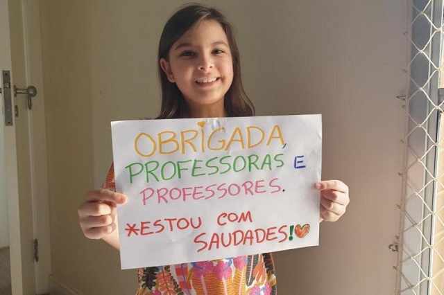 “A minha professora teve muita paciência com todos os alunos, sempre foi muito legal. Todos os dias, na hora da chamada, ela perguntava se a gente estava bem”, contou Marina Leon, 8 anos, de Brasília.