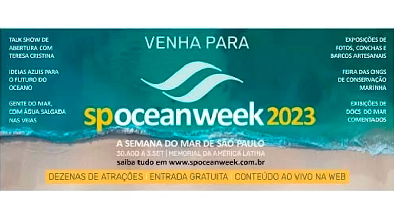 Criado em 2019 como Marina Week, o festival anual em celebração à cultura oceânica chega à quarta edição com novo nome, SP Ocean Week, e uma programação ainda mais consistente e diversa de atividades multidisciplinares gratuitamente espalhadas no Memorial da América Latina, entre os dias 30 de agosto e 03 de setembro de 2023. O evento possui patrocínio das empresas Repsol Sinopec Brasil, Instituto Aegea, Sebrae, Santos Brasil, L´Occitane au Bresil e Cirúrgica Fernandes.