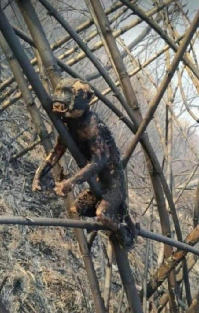Macaco carbonizado. Mais uma vítima que não conseguiu fugir - Foto: Corpo de Bombeiros do MS