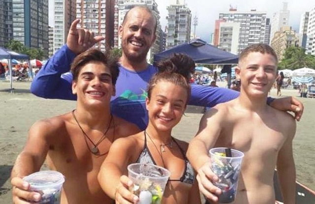 E não é só: para bancar financeiramente o Surf Limpeza, além de alugar pranchas de stand up paddle para quem (surpreendentemente!) não quer participar da iniciativa, Daniel também utiliza os resíduos entregues na barraca pelos banhistas para fazer esculturas que rementem à cidade de Santos. Assim, além de ajudar a limpar a região, ele também promove a consciência ambiental por meio de sua arte. É ou não é uma sacada e tanto?