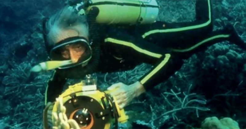 Jacques Cousteau mergulhando com o Aqualung – Foto: The Cousteau Society/Uma Vida Dedicada ao Mar – IO USP